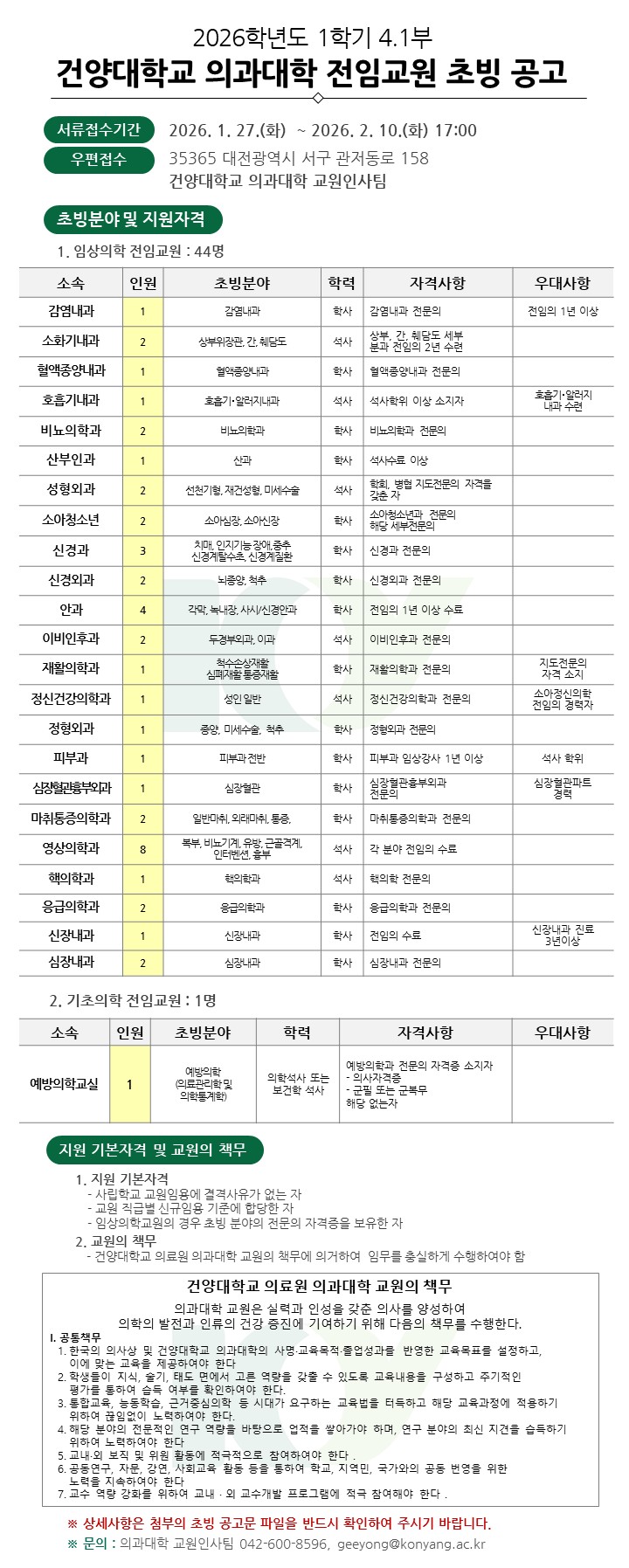 | 작성자 | 의과대학 교원인사팀 | 등록일 | 2026-01-27 | 조회 | 537 |